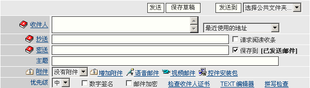 这个菜单用来发送邮件。它包括编写和发送新邮件,点击主菜单中的[写邮件]撰写邮件。