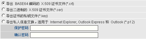 3.导出 将“我的证书”中的使用的证书导出到本地机器或导出成私人信息可以导入到 Internet Explorer, Outlook Express 等。