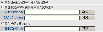 生成证书后完成,点击[返回]按钮查看证书管理列表。如果还没有证书会生成一个新的证书,如果已经存在一个证书,则会更新现在的证书。 2.导入 您可以将系统中为您分配的证书、已经生成的证书的公私钥或已经签署过的的证书导入到“我的证书”中。