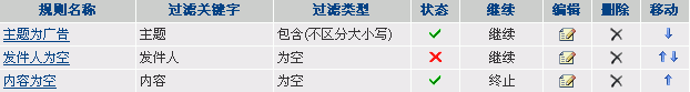 点击[邮件过滤]按钮,所有已建的过滤规则会以列表方式列出。