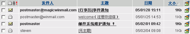 该邮件夹用来存放用户接收到的所有邮件,包括已读和未读邮件。点击[收件箱],所有邮件会以列表方式列出