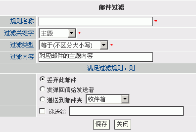 用户可增加一条过滤规则,默认为过滤该邮件的主题内容 |