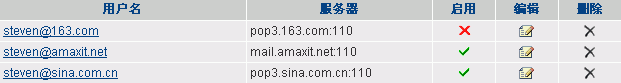 点击[外部POP3邮箱]按钮,所有已建立的外部POP3邮箱会以列表方式列出。